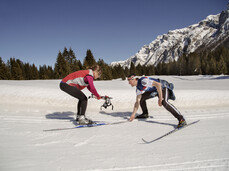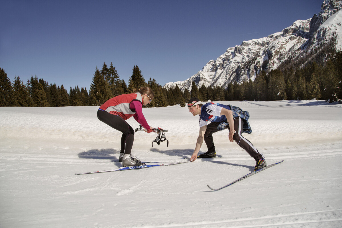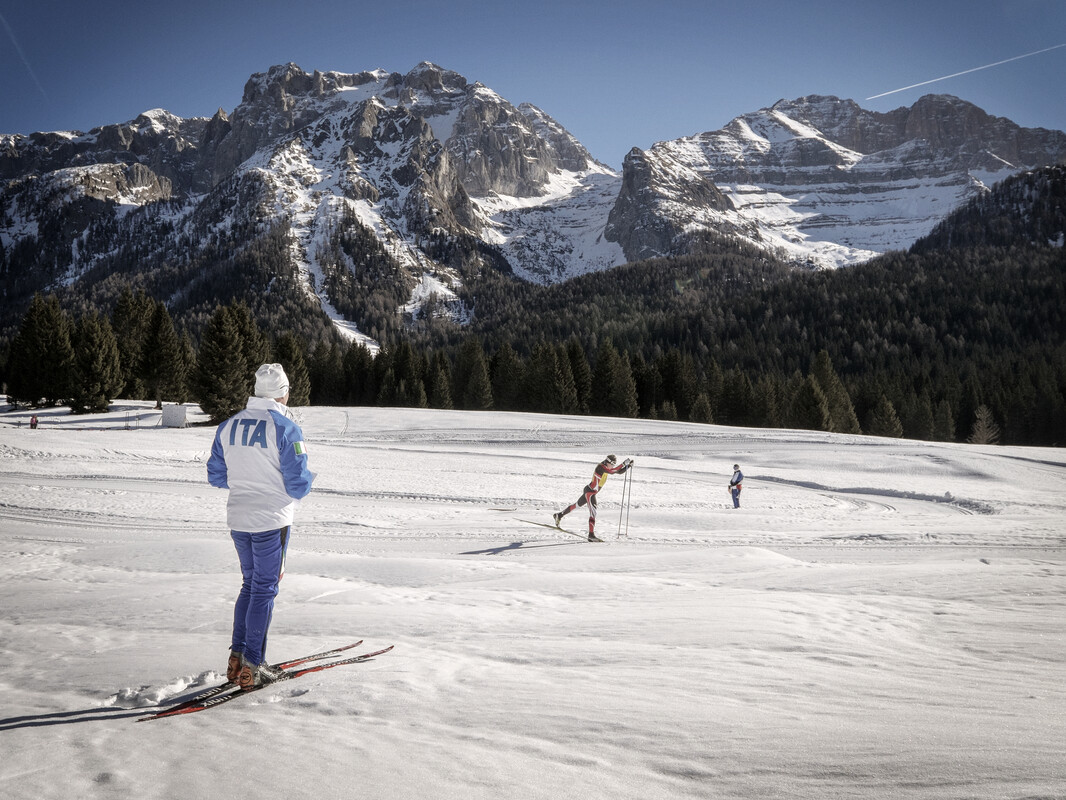 Běžkařské tratě v areálu Campo Carlo Magno mají trvale bohatý přírodní sníh a jsou každodenně precizně upravované. Čtyři tratě jsou homologované italskou sportovní federací FISI a soustřeďují se v okruzích o celkové délce 22 km, mezi nimiž jsou i velmi snadné úseky a cvičné tratě lyžařské školy. Italská škola běhu na lyžích organizuje individuální a kolektivní kurzy, kurzy pro pokročilé a kurzy rezervované pro skupiny. Nachází se zde dětský park, šatny se sprchami, půjčovna lyží, bobů a sněžnic, dále pak úschovna lyží, parkoviště a restaurace s tradiční kuchyní.