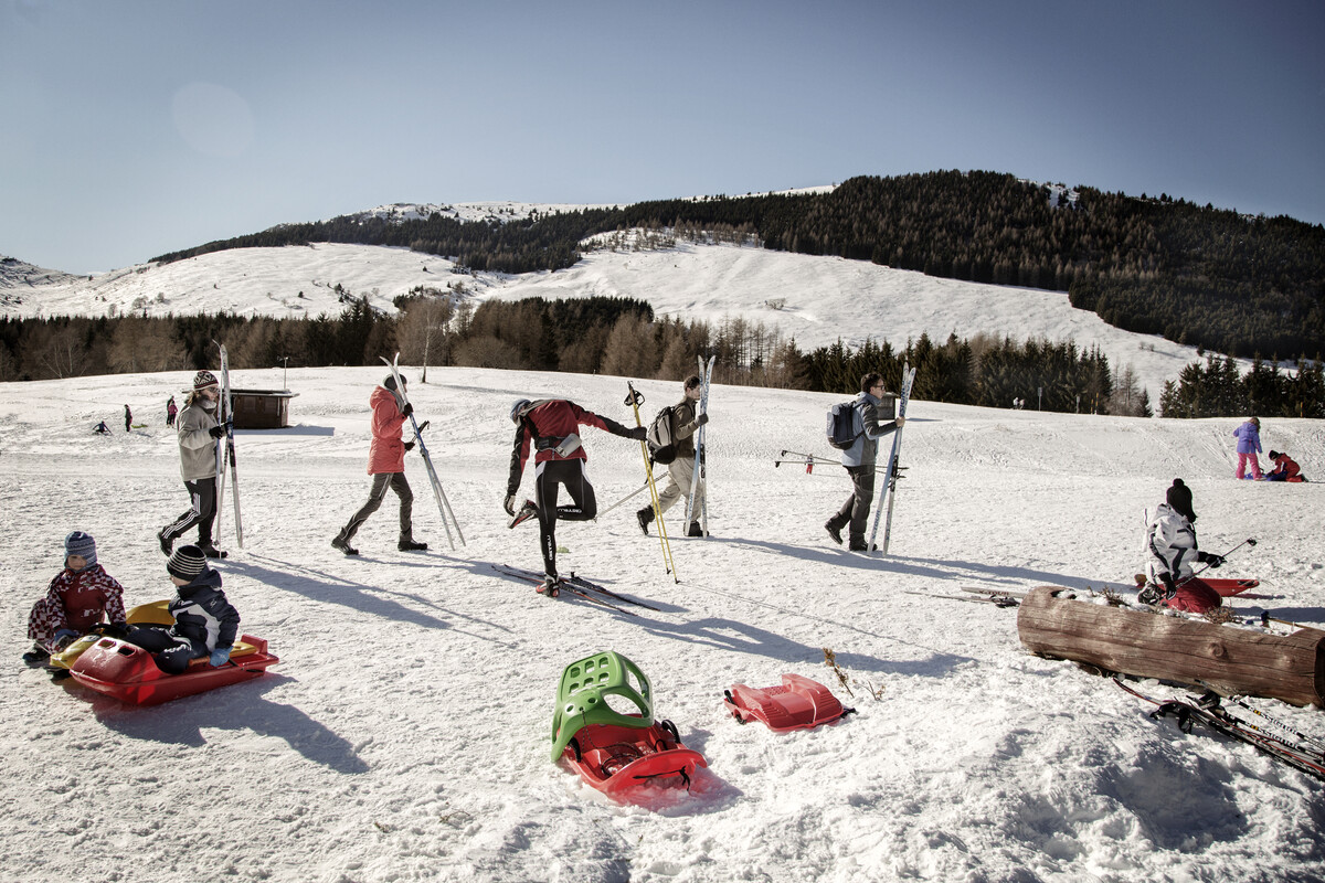 Monte Bondone také nabízí fantastické možnosti pro rodinnou lyžařskou dovolenou. Miniklub, ski bar přímo na sjezdovce, lyžařské školy, půjčovny, kemp "prvních kroků", baby cross, veselá atmosféra a spousta zábavy, to vše snadno dosažitelné pěšky přímo z hotelu. Pro vaši dovolenou konečně... bez auta