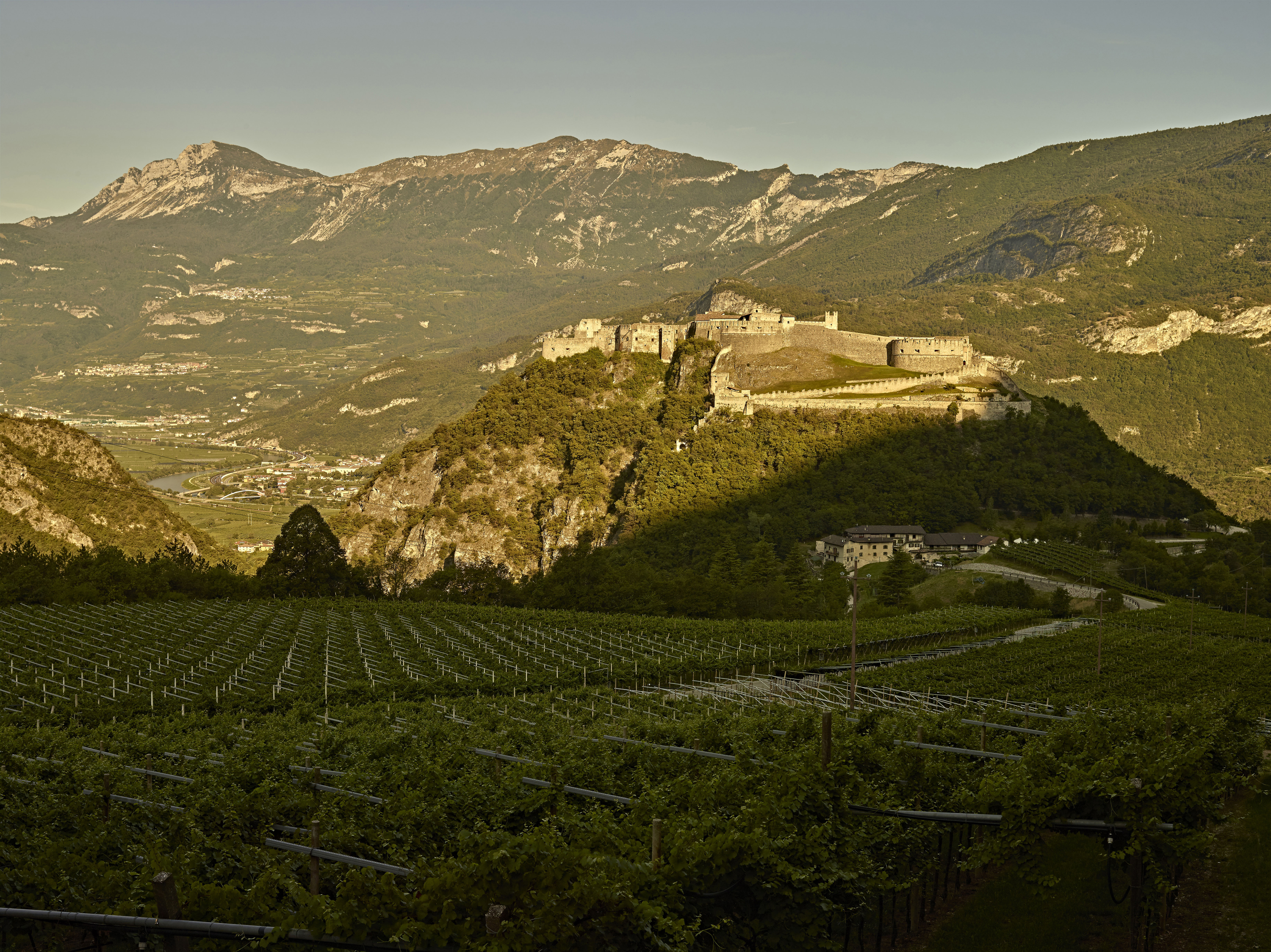 Po odpočinkové zastávce ve velkém parku Albere najedete opět na cyklotrasu a jede se dál. Projedete kolem druhého „cyklogrilu“ a pokud chcete, můžete snadno navštívit ještě jedno muzeum, letecké muzeum „Gianni Caproni“ (Museo Aeronautico “Gianni Caproni”), věnované trentinskému inženýrovi, který byl průkopníkem letectví v Itálii. Následují dlouhé rovné úseky podél řeky Adiže a přes území někdejší správní oblasti Comun Comunale Lagarino, která se táhla od Aldena po Mori. Mezi sady a poli se nyní objevuje něco nového: hrady - nezaměnitelný znak toho, že jsme vstoupili do údolí Vallagarina, které je také vinařskou oblastí a domovem odrůdy Marzemino. Dále už vidíte obce Calliano a Nomi (a také třetí cyklogril), na levé straně se tyčí hrad Castel Beseno, největší opevněný komplex v Trentinu, a krátce nato hrad Castel Pietra. Krajina s vinicemi obklopuje vinařské vesnice na kopcích jako Castellano nebo Villa Lagarina, a to už se naše trasa se blíží k Roveretu. Ze čtvrti Borgo Sacco vystavěné kolem staré habsburské manufaktury (Antica Manifattura Asburgica), kde dnes vzniká nové inovační centrum navržené architektem Kengo Kumou, se můžete vydat hned třemi směry: buď k dalším známým vinařským vesnicím, jako je Isera se svou vinotékou, nebo směrem ke Gardskému jezeru přes Mori a Loppio a nebo k nejjižnější části údolí Vallagarina až k hranici s provincií Verona.