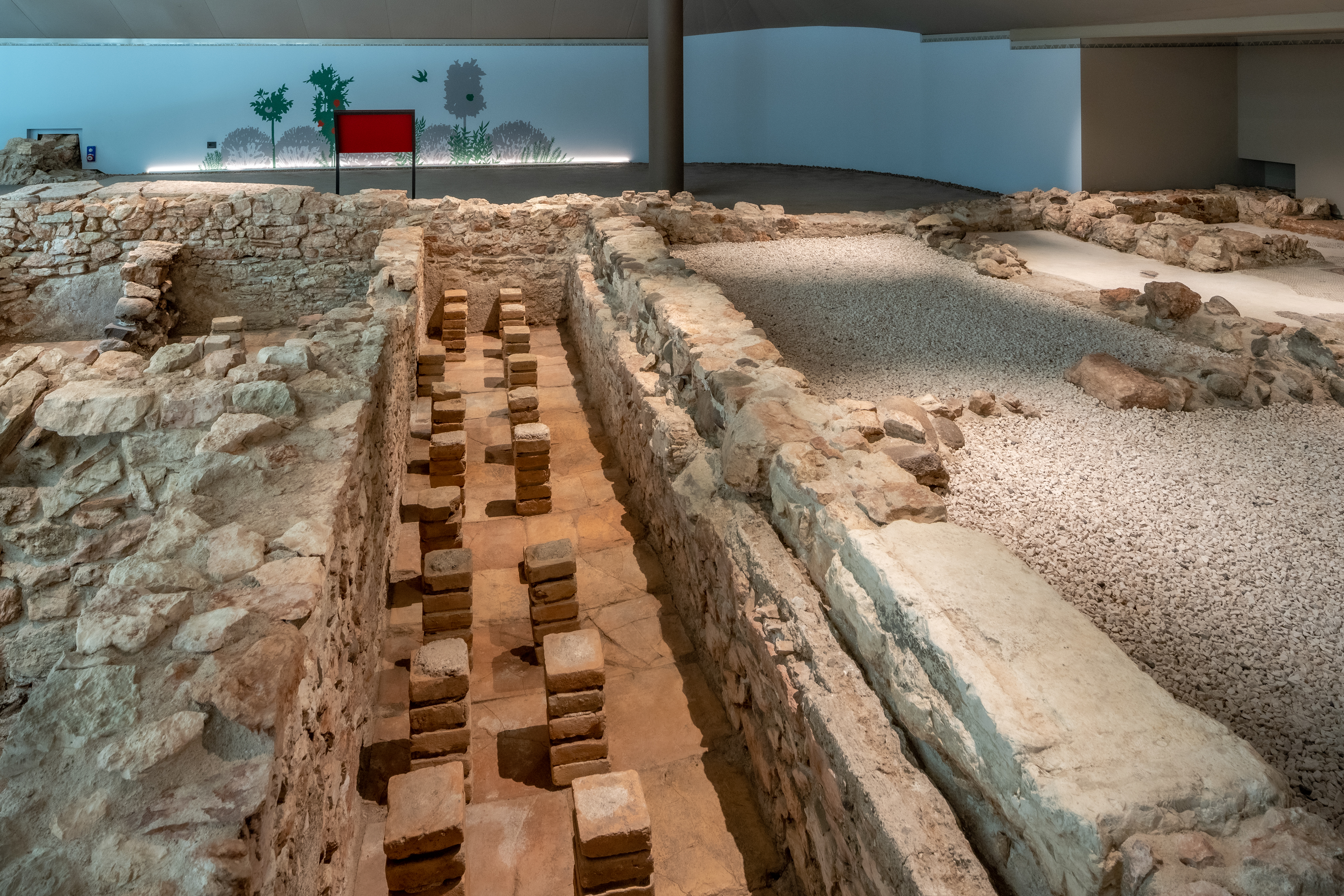 Návštěvnická trasa je doplněna informačními panely ve třech jazycích (italštině, angličtině a němčině) a vitrínou s artefakty, jemně zdobenými skleněnými a keramickými poháry a číšemi na pití pocházejícími z oblasti Pádské nížiny, ale doložena je i africká keramika. Fragmenty amfor svědčí o dovozu prestižních potravin, oleje a vín z oblasti Pádské nížiny a horního Jadranu a z ostrovů východního Středomoří. Symbolický pro bohatství majitelů je nález ústřic, pravděpodobně pocházejících z Jaderského moře.