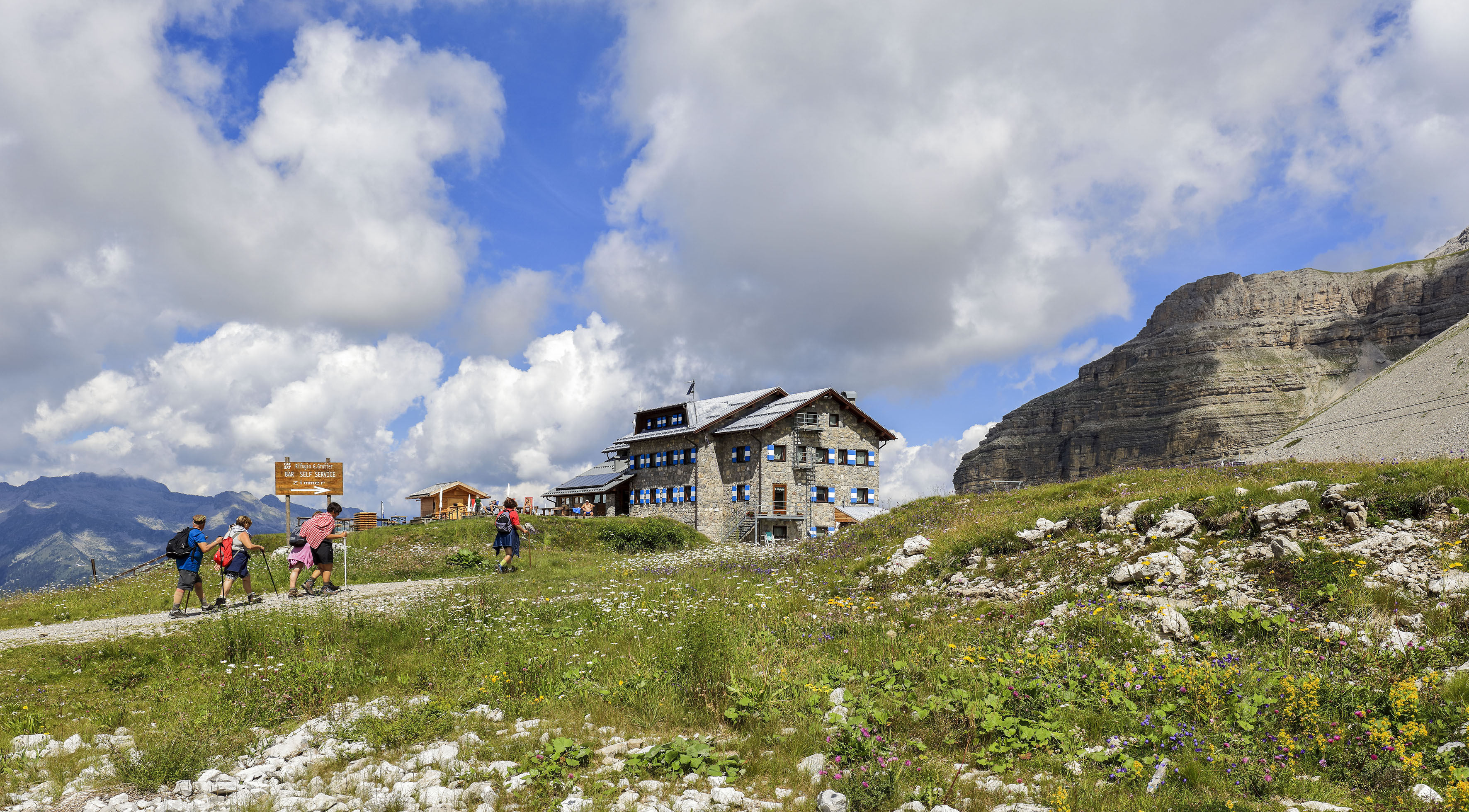 Mezi hory, které Unesco zařadilo mezi Světové přírodní dědictví, patří např. Pale di San Martino, kde prodlužují sezónu horské chaty Pradidali a Treviso v údolí Val Canali, Capanna Cervino v Passo Rolle, Vederne e Fonteghi na úpatí Vette Feltrine, zatímco v Dolomitech di Brenta je možné podnikat dnes již klasické pěší túry z horských chat Cacciatore a Agostini v údolí Val d’Ambièz a z chaty Giorgio Graffer na hoře Grostè. V oblasti horské skupiny Adamello vytváří zázemí pro výlety do pestroberevných lesů horské chaty Brigata Lupi di Toscana na horské planině Altopiano dei Boniprati, Trivena v údolí Val Breguzzo a Val di Fumo.