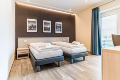 Naše dvojlůžkové a vícelůžkové pokoje jsou navrženy pro maximální pohodlí a jsou vybaveny klimatizací a WiFi.