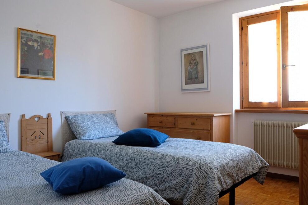 Nový dvoupokojový apartmán v Fai della Paganella, umístěný v historickém centru, blízko všech služeb (obchody, kyvadlová doprava, restaurace). V prvním patře se skládá z prostorného obývacího pokoje s kuchyňským koutem a manželskou rozkládací pohovkou, balkonu, ložnice s manželskou postelí, koupelny se sprchou a malého balkonku. Vybavení: barevná televize, lednička s mrazákem, trouba, pračka, wifi. Veřejné parkoviště v blízkosti.