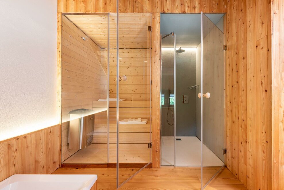Na scénu vstupuje jeho veličenstvo dřevo a jeho rustikální kouzlo: okouzlující detoxikační sauna, široká vířivka, která vás vítá společně se slunečními paprsky, které jemně padají z lucerny; sladké jako doteky sprchy. Perfektní pro romantický pobyt ve dvou.
