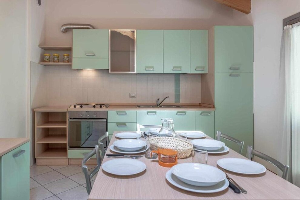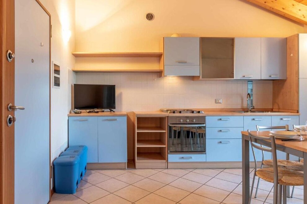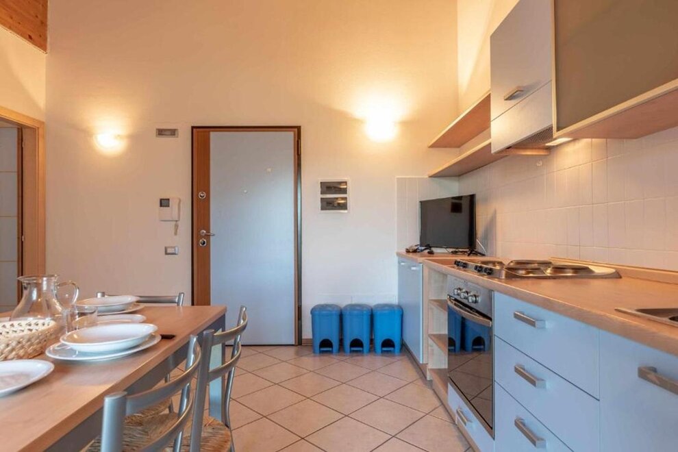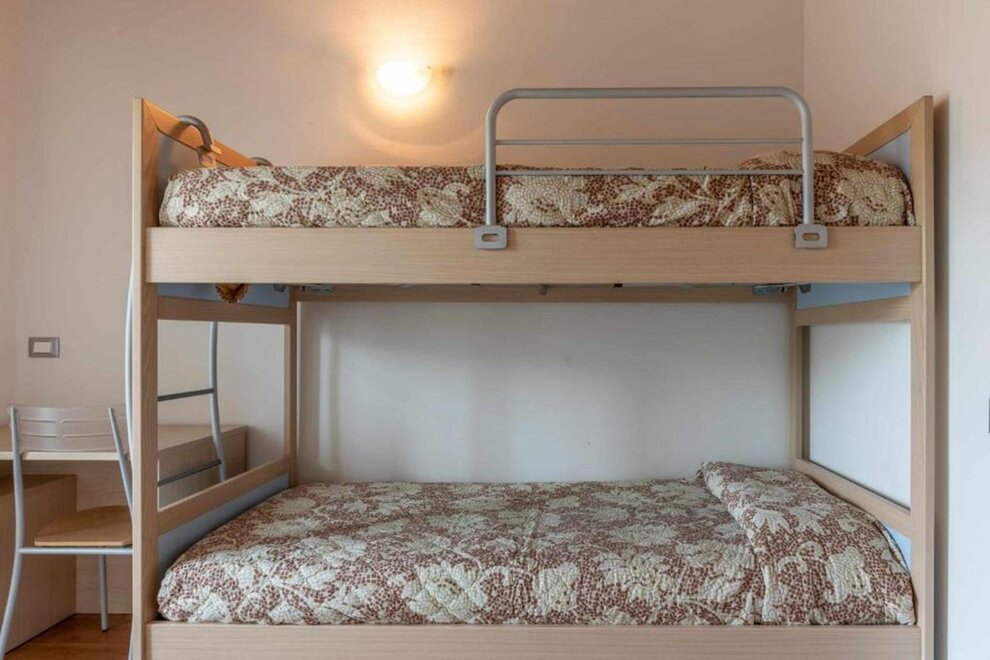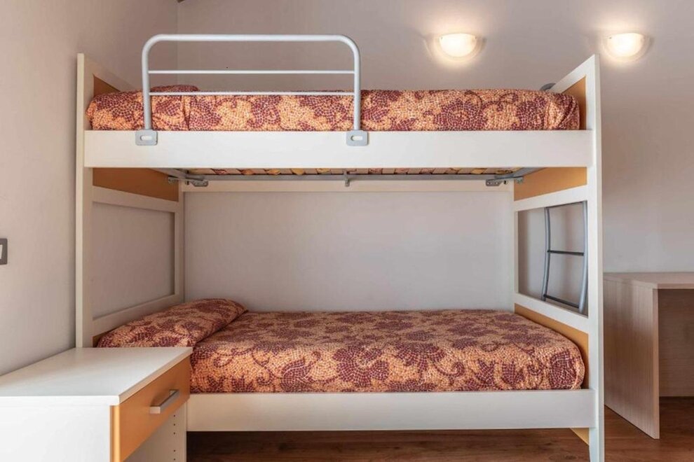 Apartmán (60 m2) je vhodný pro 4 osoby a skládá se ze dvou ložnic: jedna s manželskou postelí a druhá s patrovou postelí, koupelny se sprchou a pračkou, obývacího prostoru vybaveného vším potřebným pro vychutnání si pobytu (nádobí, hrnce, trouba, televize atd.) a balkonu, kde můžete příjemně trávit letní dny.