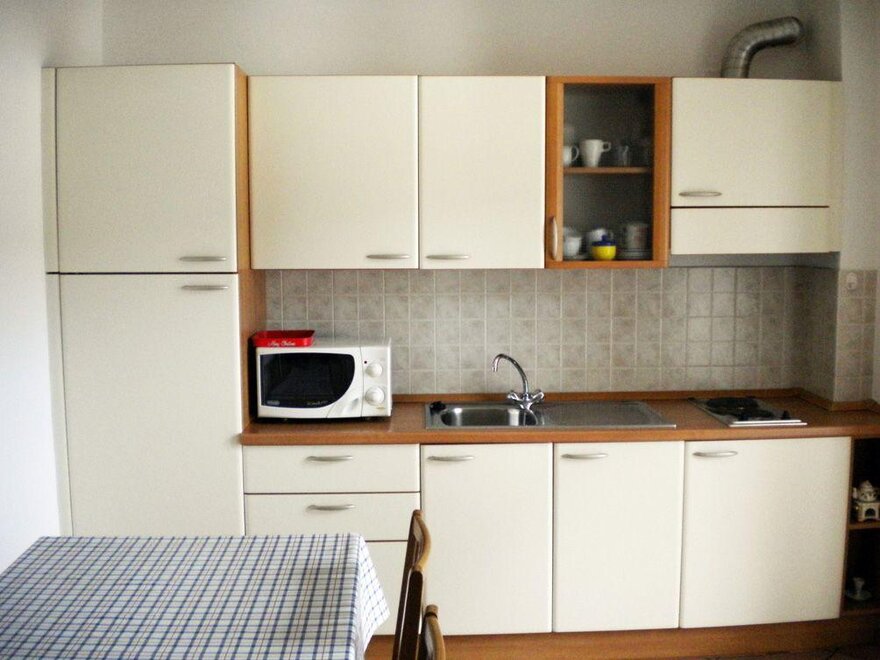 Čtyřpokojové/třípokojové apartmány s pračkou, TV, mikrovlnnou troubou, úschovou lyží, bezpečnostními dveřmi.