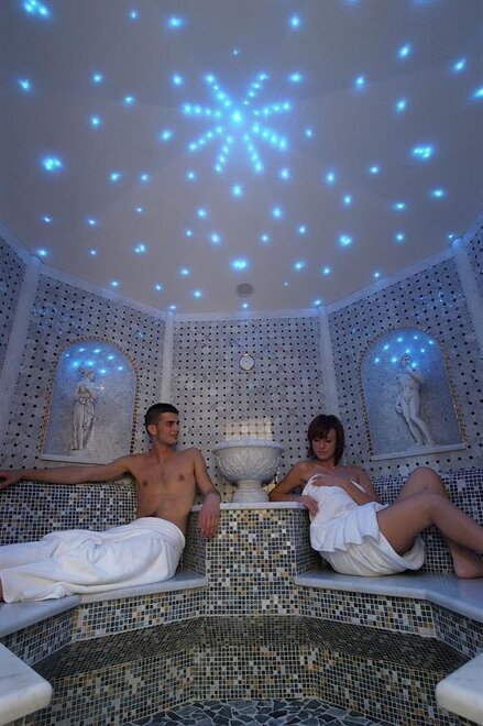 Manželský pokoj nebo pokoj se 2 lůžky s možností III. lůžka nebo patrové postele, s koupelnou se sprchou, fénem, minibarem, trezorem, všechny s balkonem, LCD televizí se 6 kanály SKY, telefonem.