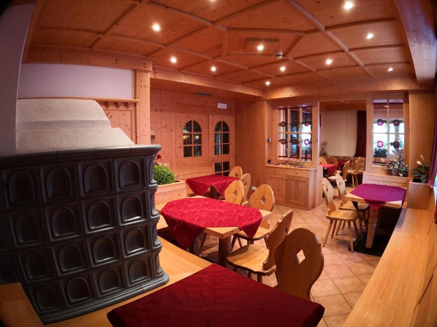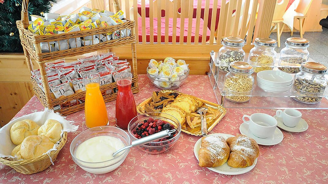 Snídaně a oběd se podávají v samoobslužné jídelně s výhledem přímo na sjezdovky, zatímco večeře se podává v malé místnosti uvnitř hotelu. Jídlo je ze světa italské gastronomické tradice.