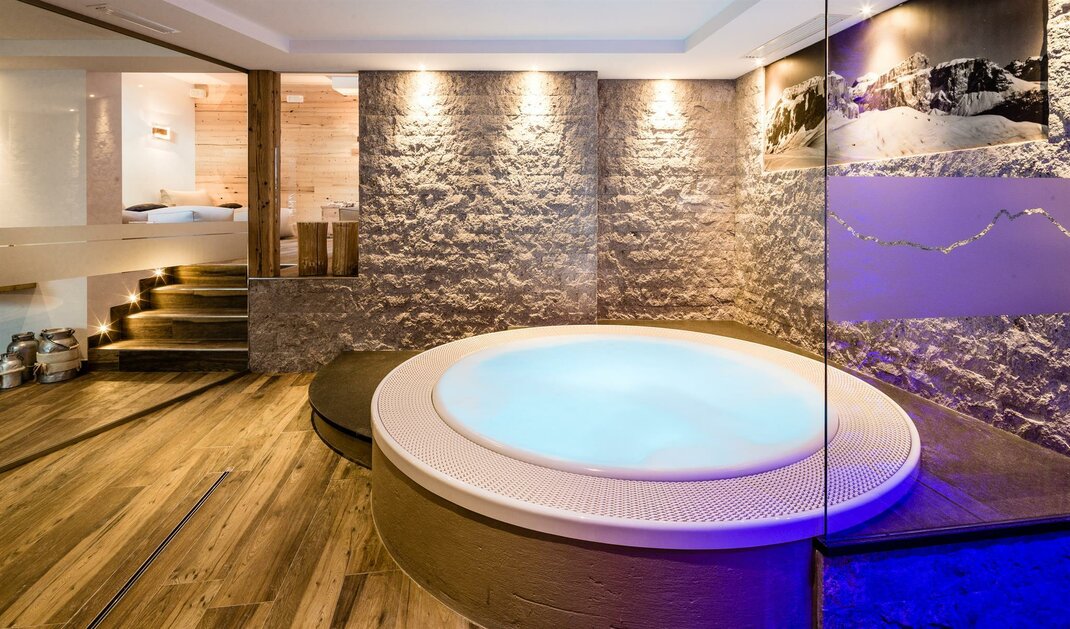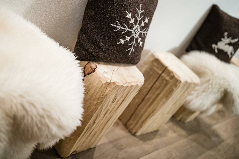 Decorated in typical mountain style, with double bed, balcony with panoramic views towards the Vernel and Colac. Reading corner with comfortable loden armchairs. Supplied with soft bathrobes. Fresh fruit basket the arrival day. Flat-screen satellite TV, telephone, safe, WI-FI, private bathroom with shower and hairdryer.