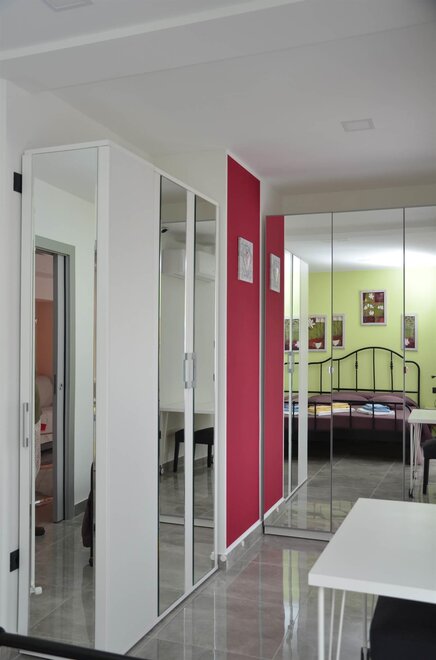 Apartmány Arco v Centro Stivo (bývalý B&B) apartmán pro max. 8 osob, má terasu na průchodu před vchodem do budovy s výhledem na zámek a uvnitř se nacházejí tři manželské ložnice, jedna také s umyvadlem, dvě koupelny, chodba, kuchyň a parkovací místo v zahradě;