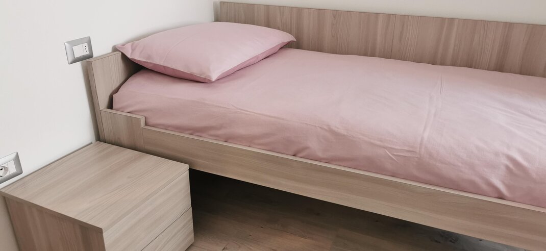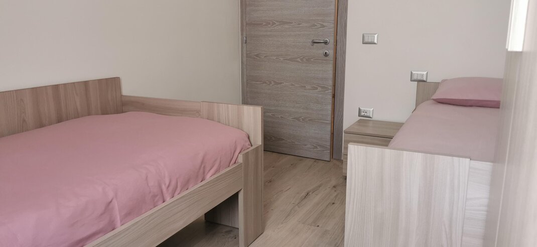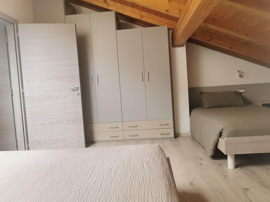 1 dvoupokojový byt v podkroví složený z kuchyně/salonu, jedné ložnice s manželskou postelí a jednou postelí o šířce 1,5 metru.