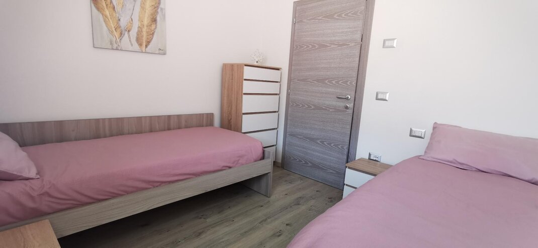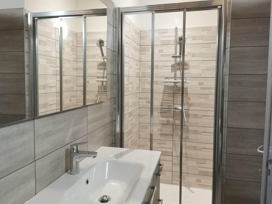 2 třípokojové byty složené z vchodu, kuchyně/salonu, jedné ložnice s manželskou postelí a jedné ložnice se patrovou postelí, koupelna se sprchou, balkon nebo terasa.
