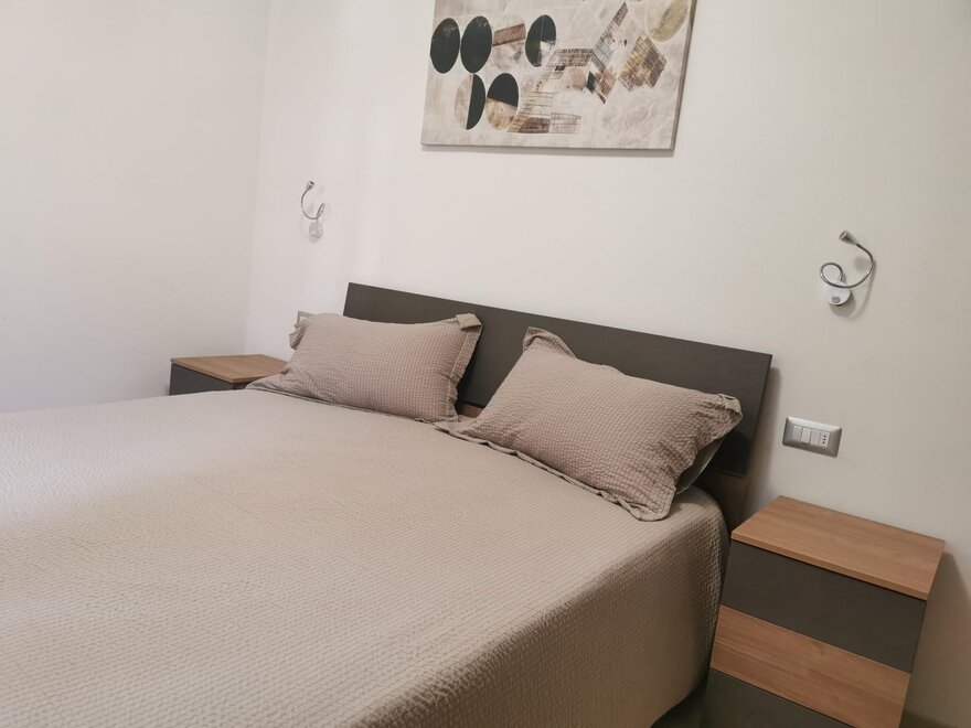 1 třípokojový byt složený z vchodu, kuchyně/salonu, dvou ložnic s manželskou postelí, koupelna se sprchou, balkon.