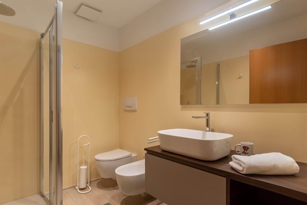 počet koupelen: 1, koupelna, sprcha, WC, bidet, umyvadlo, tekoucí studená/teplá voda, WC, koupelna, WC, sprcha nebo vana