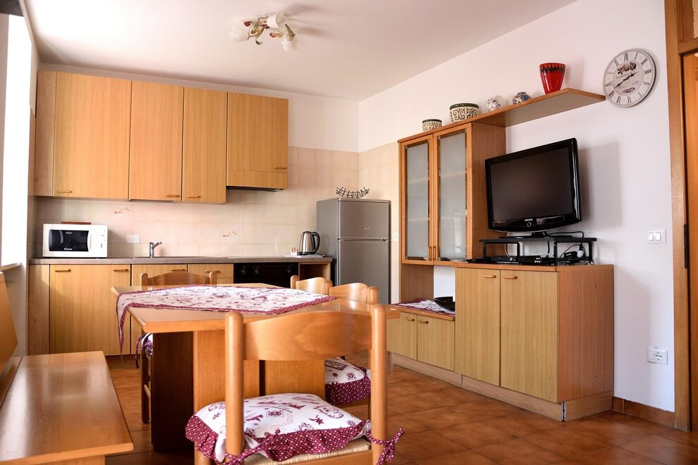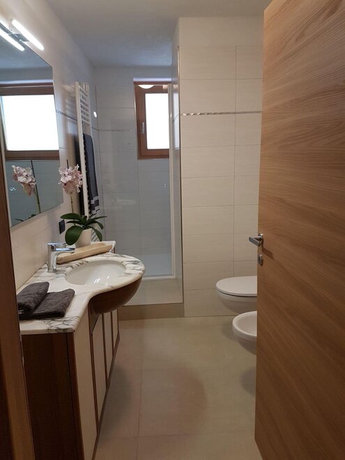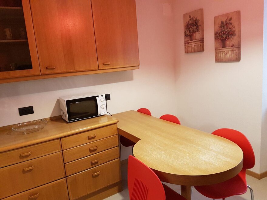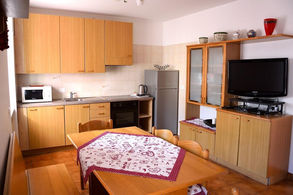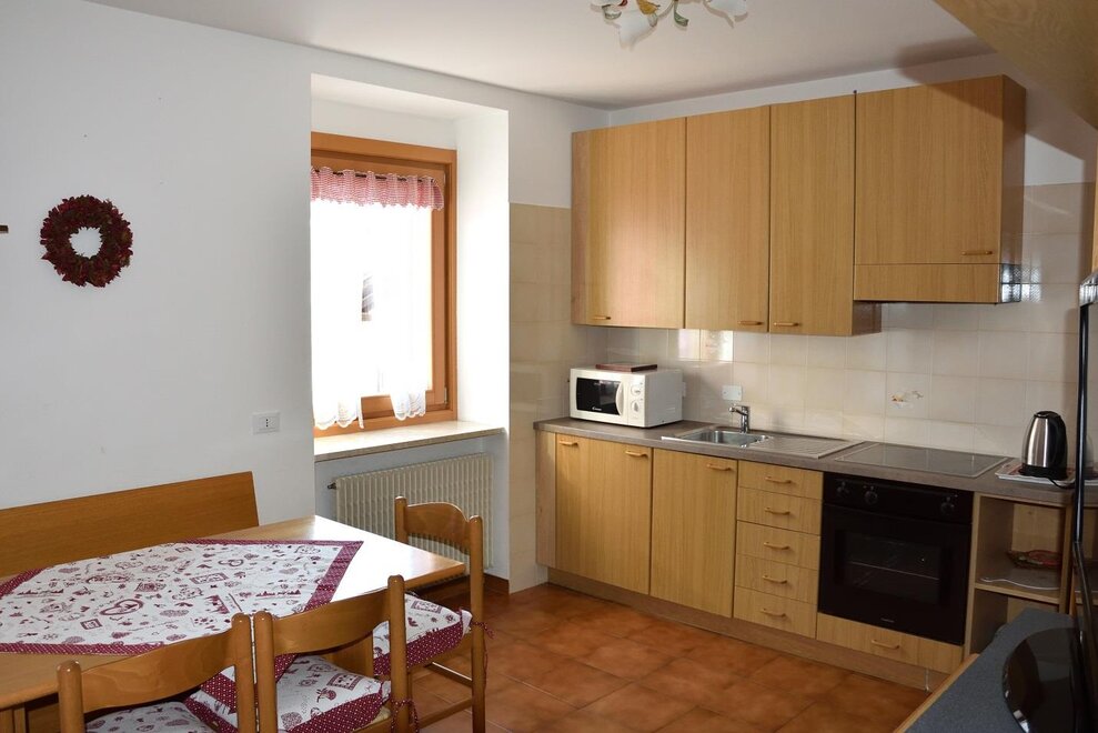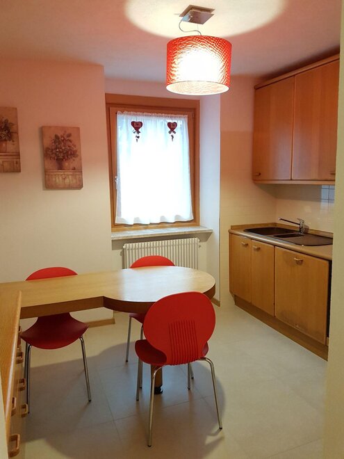 Apartmán Paganella se nachází v prvním patře budovy, skládá se z kuchyně, obývacího pokoje, manželské ložnice, pokoje s palandou a koupelny.