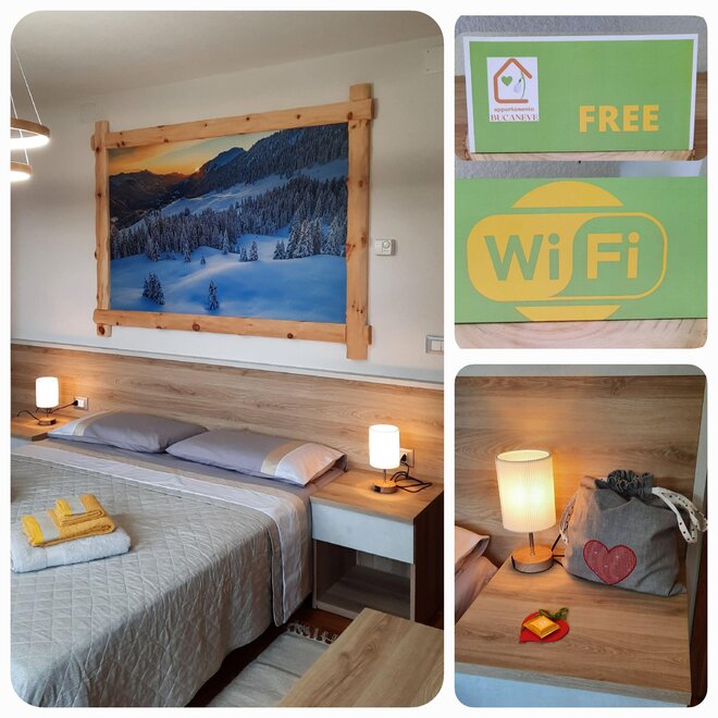 Nový byt o velikosti 90 m², se samostatným vchodem, panoramatickým balkonem o velikosti 10 m² s výhledem na Arboreto del Tesino a golfové hřiště, garáží o velikosti 30 m² a vyhrazeným parkovacím místem. Byt má jednu ložnici se dvěma samostatnými lůžky, manželskou ložnici, kde je možnost přidat dětskou postýlku nebo jednolůžko, prostornou kuchyni s jídelnou a koupelnu se sprchou. Zařízeno s detaily z Cirmolo, vzácného dřeva, které uvolňuje balzamickou vůni a podporuje pohodu.