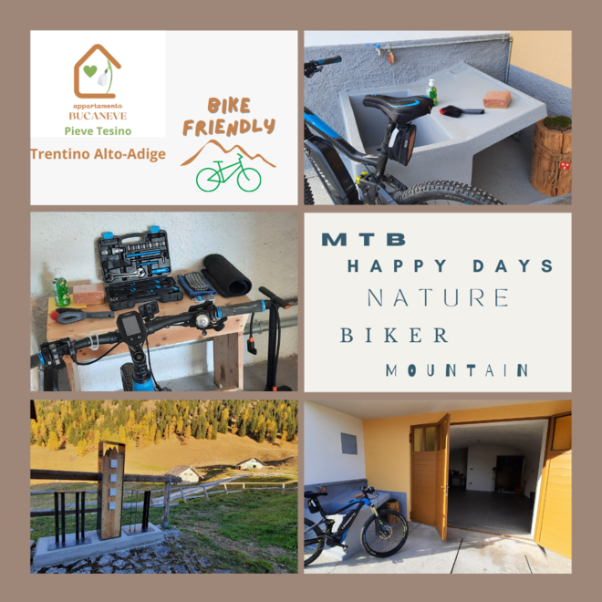 Byt je BIKE-FRIENDLY. Cykliste mají k dispozici uzavřenou garáž pro parkování svých kol. Je k dispozici kufřík s vybavením pro první opravy, potřebné k čištění kol a místo, kde je lze umýt. K dispozici je také sušák na prádlo pro osušení oblečení a vybavení. K dispozici jsou rovněž mapy s itineráři oblasti.