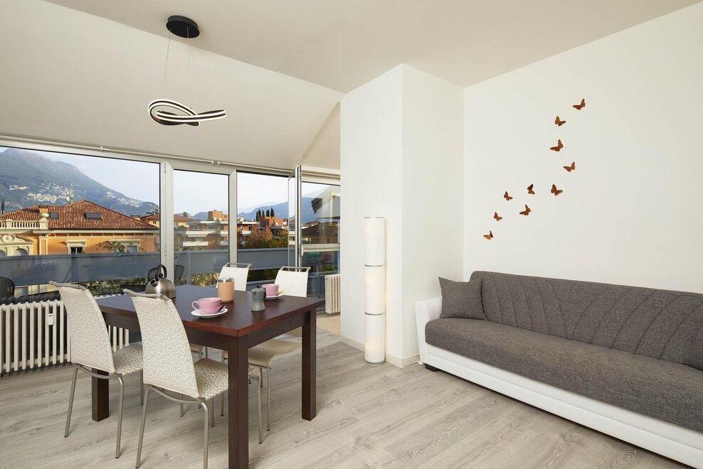 Apartmán Diamante sul Lago se nachází ve šestém patře s výtahem v centru města na Viale Giosuè Carducci, s výhledem na nádherné vily ve stylu Liberty v Riva del Garda. Je velký 72 m² a skládá se z prostorného obývacího pokoje s pohovkou, klimatizací, balkonu s výhledem na hory s křesly a stolkem, plně vybavené a zařízené kuchyně, koupelny se sprchou, prostorné ložnice s manželskou postelí, světlého pokoje se dvěma jednolůžkovými postelemi, který lze převést na další manželskou ložnici, a velmi užitečné sklepy jako úložiště pro kola nebo zavazadla. Diamante se může pyšnit strategickou polohou: pár kroků od domu naleznete centrum Riva del Garda. Za budovou se nachází malebná promenáda, která vás zavede přímo k jezeru, kde se můžete ponořit do modrých vod jezera, osvěžit se ve stínu květinových zahrad, nebo si odpočinout v útulných stáncích, barech a restauracích.