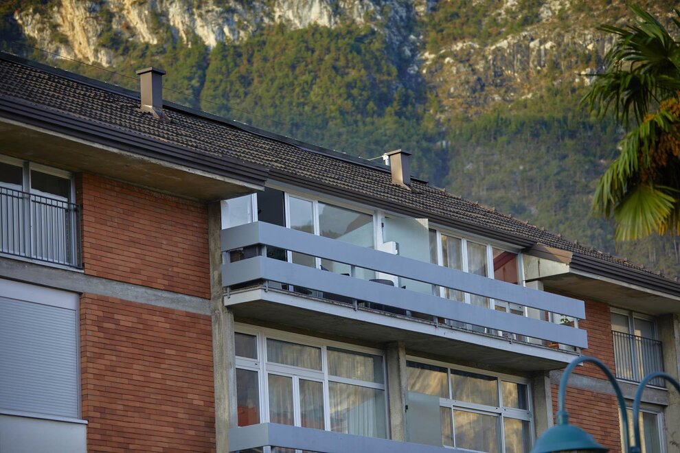 Byt Diamante u jezera se nachází ve 6. patře s výtahem v centrální budově na Viale Giosuè Carducci, s výhledem na nádherné villy ve stylu Liberty v Riva del Garda.
