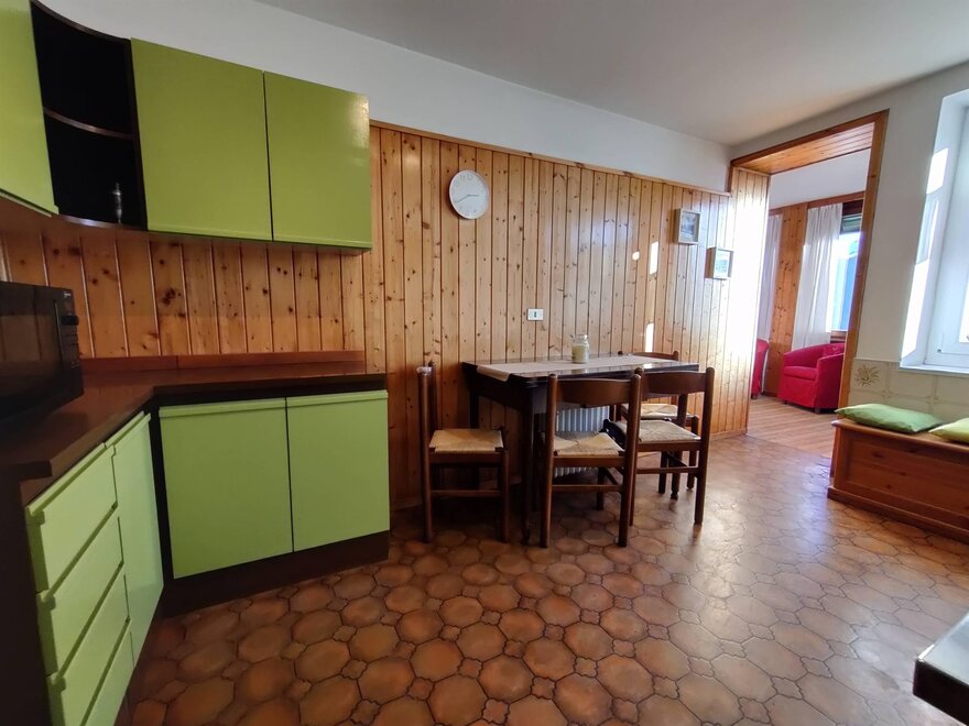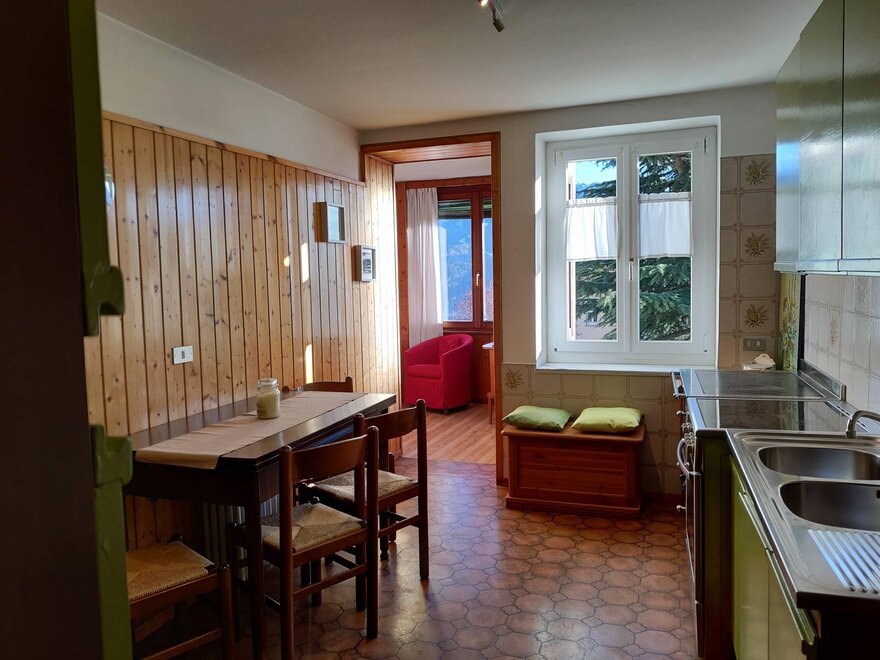 Apartmán má přibližně 80 m² s jižně orientovanou soukromou terasou o rozloze 20 m². Vstupuje se z charakteristického bývalého seníku (tabià) pro horské stavby, soukromého, kde je k dispozici malý prostor na uskladnění lyží, bot atd. Skládá se z vchodu s chodbou, malého prostoru na pračku, koupelny s vanou/sprchou, ložnice s manželskou postelí, dvoulůžkového pokoje, kuchyně a obývacího pokoje s okny s výhledem na Lagorai. V blízkosti jsou k dispozici různá bezplatná parkoviště.