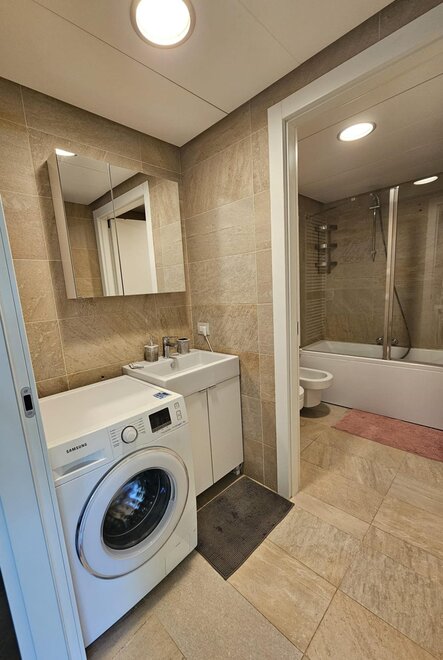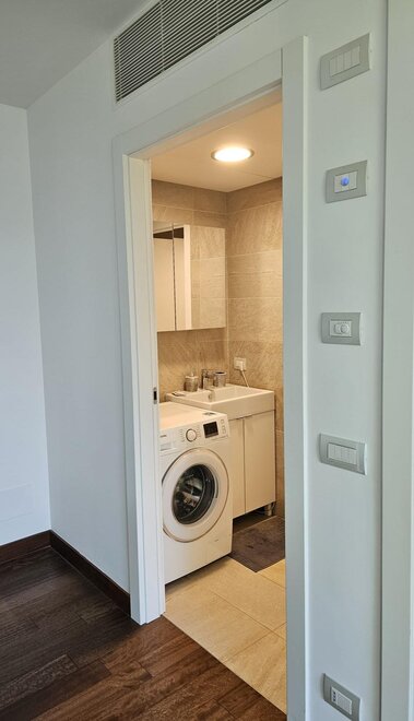 Před domem, v parku Albere, se nachází dětské hřiště a pár stovek metrů dále jsou posilovna, supermarket, lékárna a několik barů/restaurací.Sanitární vybavení