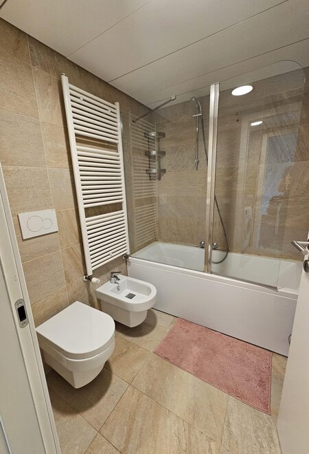 bidet, koupací vana, koupelna, WC, courtesy toiletries, bathtub with integrated shower, tekoucí studená/teplá voda