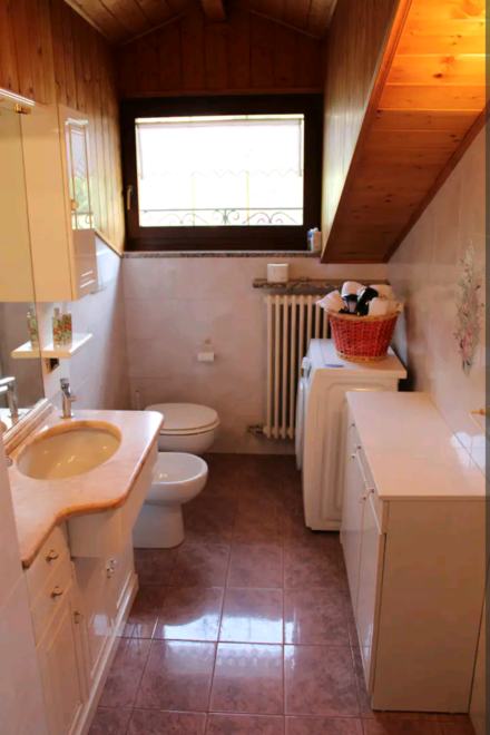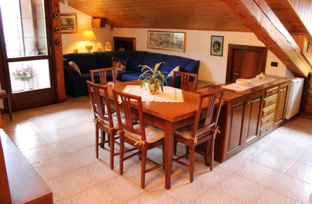 Je zde malý krytý balkon, který můžete využít na snídani až večeři, kompletní se stolem a židlemi pro dvě/tři osoby. Naše kuchyně má veškeré vybavení, které zaručuje kvalitní pobyt. Najdete zde: myčku nádobí, talíře a příbory, sklenice, hrnky, hrnce, kuchyňské náčiní a rychlovarnou konvici. Podkroví má také malý obývací pokoj spojený s kuchyní, s prostornou pohovkou, ideální pro relaxaci po náročném dni nebo na čtení dobré knihy během deštivých dnů. Koupelna apartmánu je malá, ale disponuje všemi potřebnými komforty pro pobyt na horách, od teplé sprchy po pračku na praní vašich oděvů.