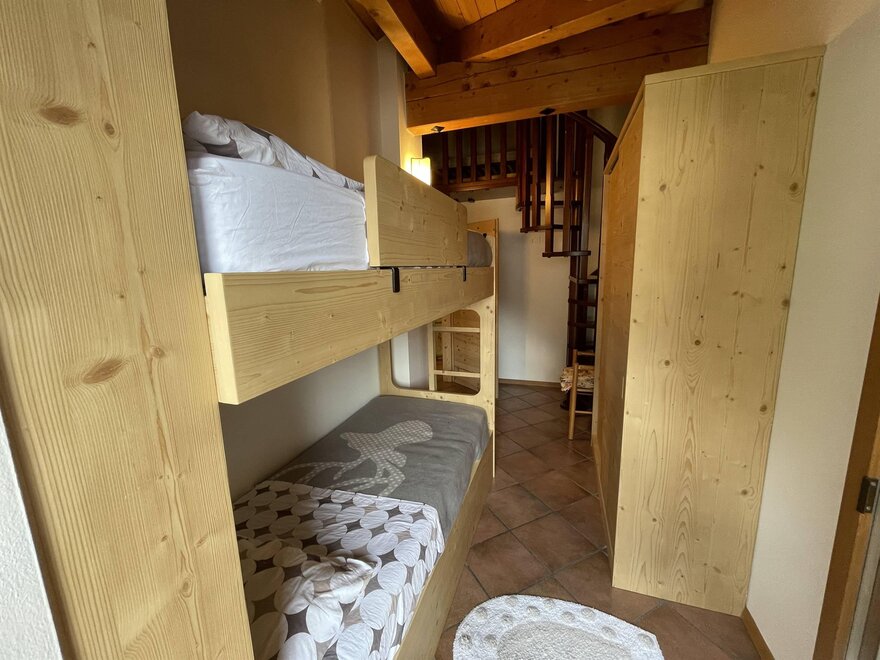 Byt nabízí světlý obývací prostor s vybavenou kuchyní a obývákem s manželskou rozkládací pohovkou, dvě koupelny (jedna se sprchou) a dvě ložnice: jednu manželskou a druhou rozloženou na dvou úrovních, zařízenou patrovou postelí a jednolůžkem s protialergickými matracemi.