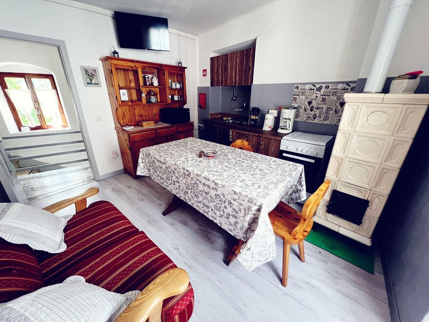 pokoj pro alergiky, Wi-fi zdarma, ručníky k dispozici, samostatná ložnice: 2, toaletní prádlo, rustikální nábytek, apartment without fitted carpet, možnost mražení potravin, linen provided , pračka, prošívané deky, private entry, žehlička, nekuřácký pokoj, povlečení k dispozici, rodinný pokoj, možnost vaření, povlečení pro alergiky, mikrovlnná trouba, detektor oxidu uhelnatého, dřez na mytí nádobí, self check in, kuchyňský kout, trouba, přebalovací stůl, crockery and cutlery , seasonal rental too (summer), varná konvice, kuchyň, plynový sporák, zásuvka u postele, satelitní TV, využití pračky, jednoduché vybavení nábytkem, dětská židle, kávovar, bez koberce, přikrývky, WiFi, základy (Ručníky, povlečení, mýdlo a toaletní papír), vlasový fén, další pokoj, skříň, lednice, pokoj/apartmán v tiché zóně, nádobí k dispozici, kuchyňské nádobí, toaletní potřeby, hasicí přístroj, mikrovlnná trouba, detektor kouře, zahradní gril