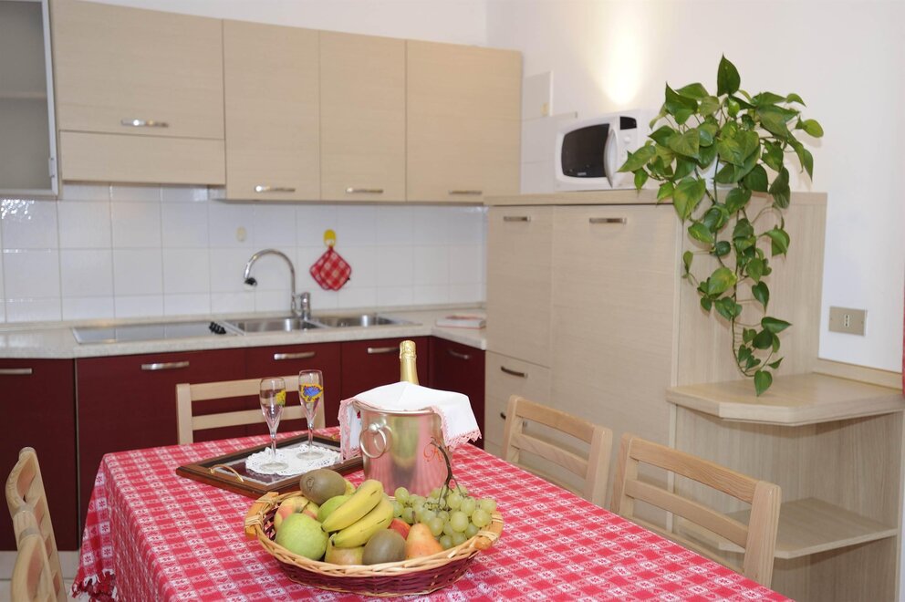 Apartmán je prostorný, se 2 ložnicemi, kuchyní/obývacím pokojem, prostornou koupelnou s oknem a sprchou, balkonem a terasou vybavenou stoly a lehátky na slunce.