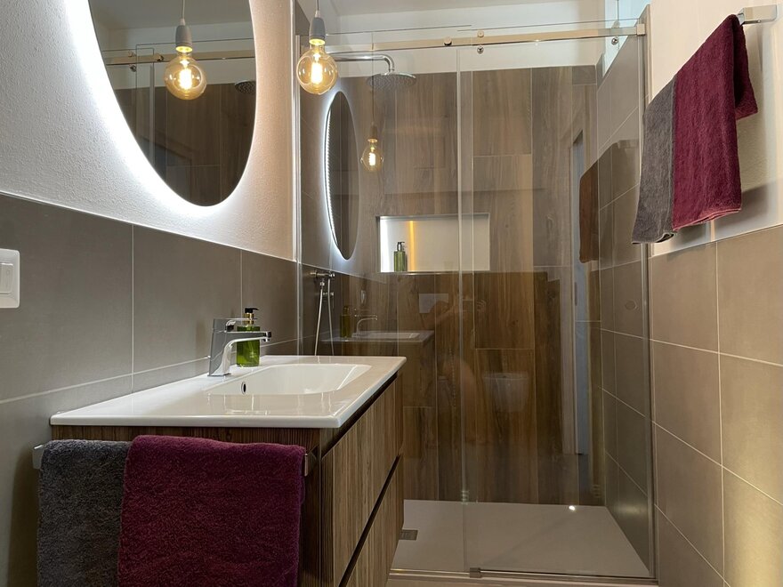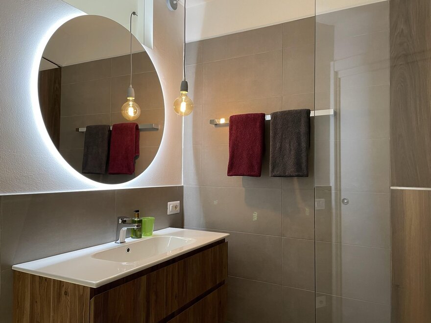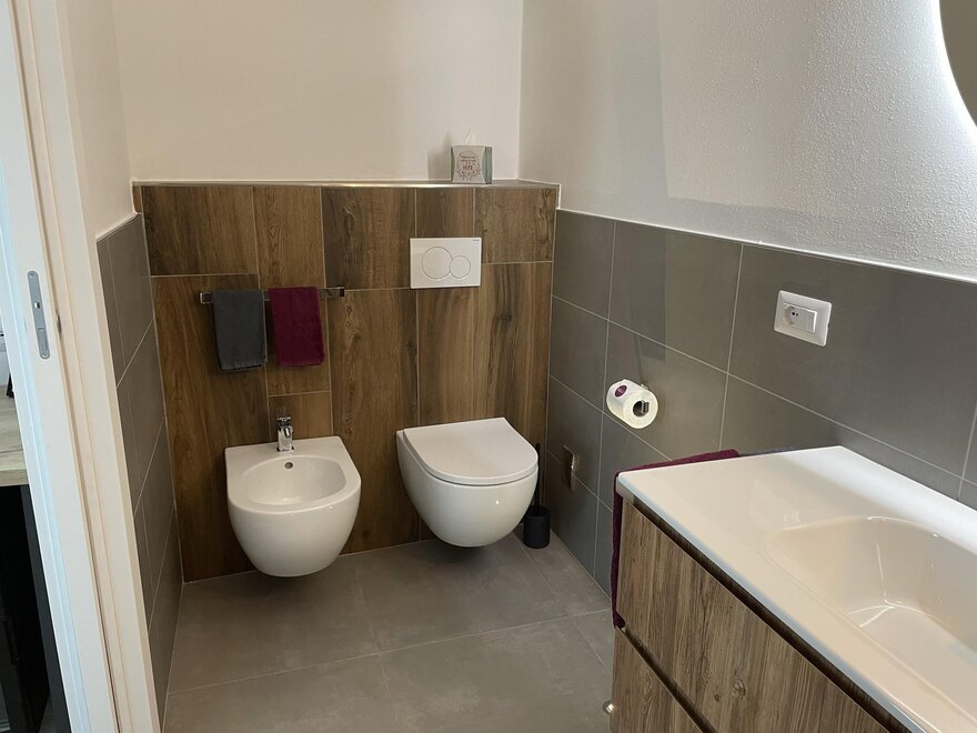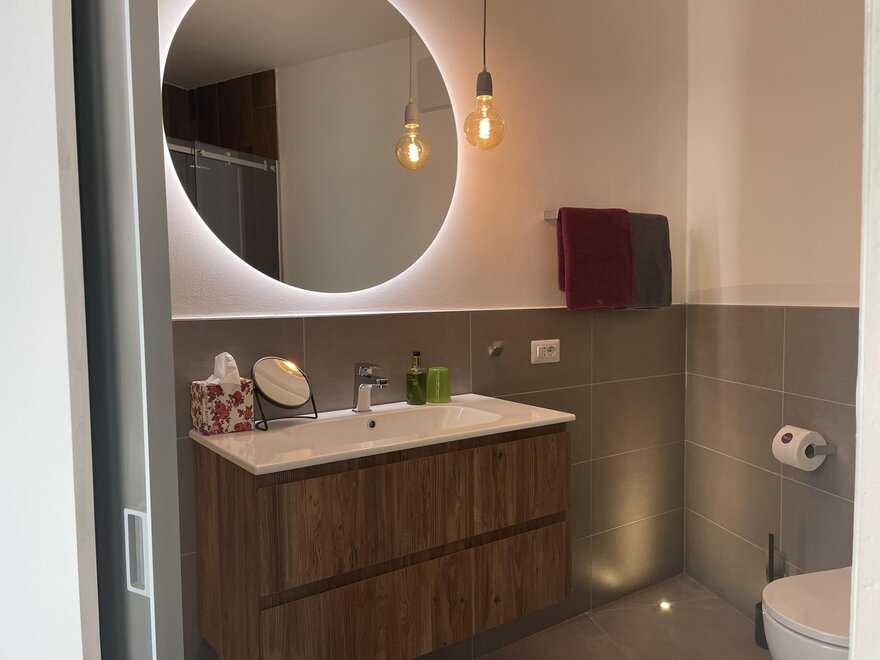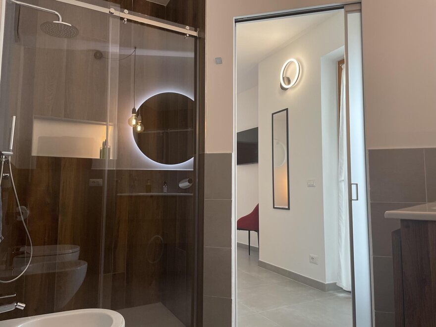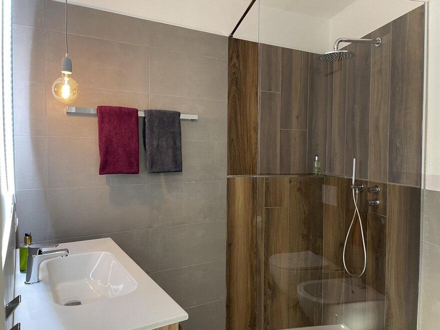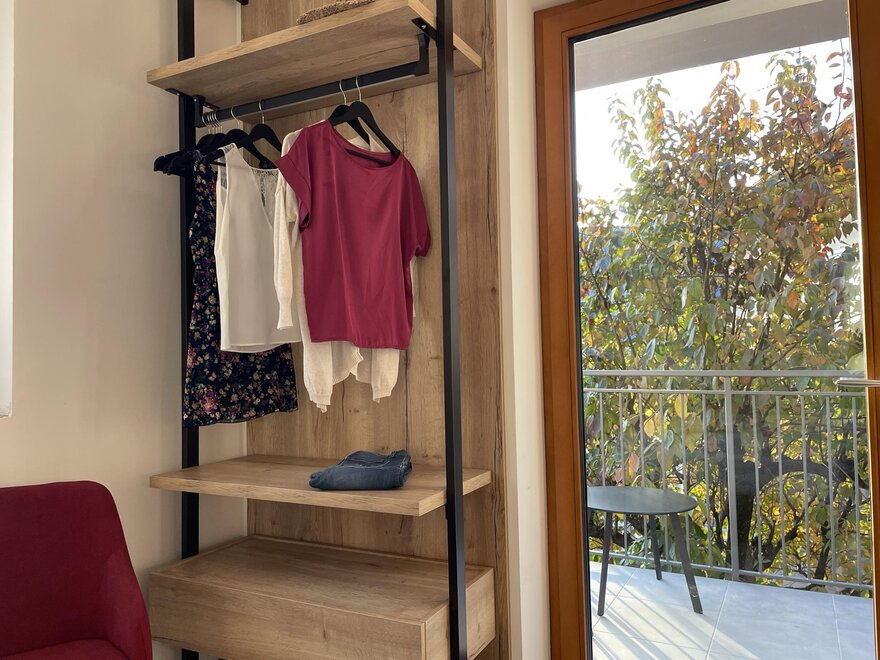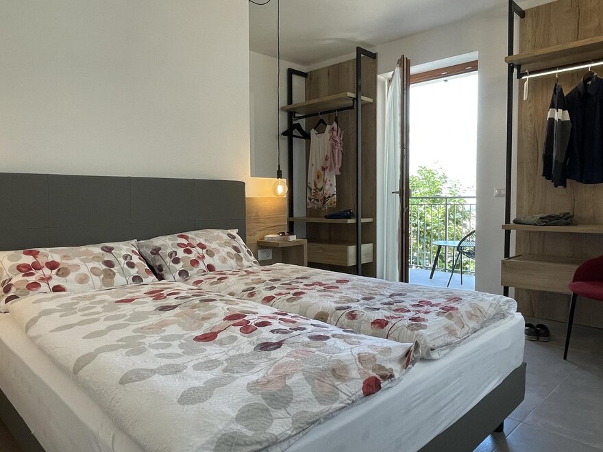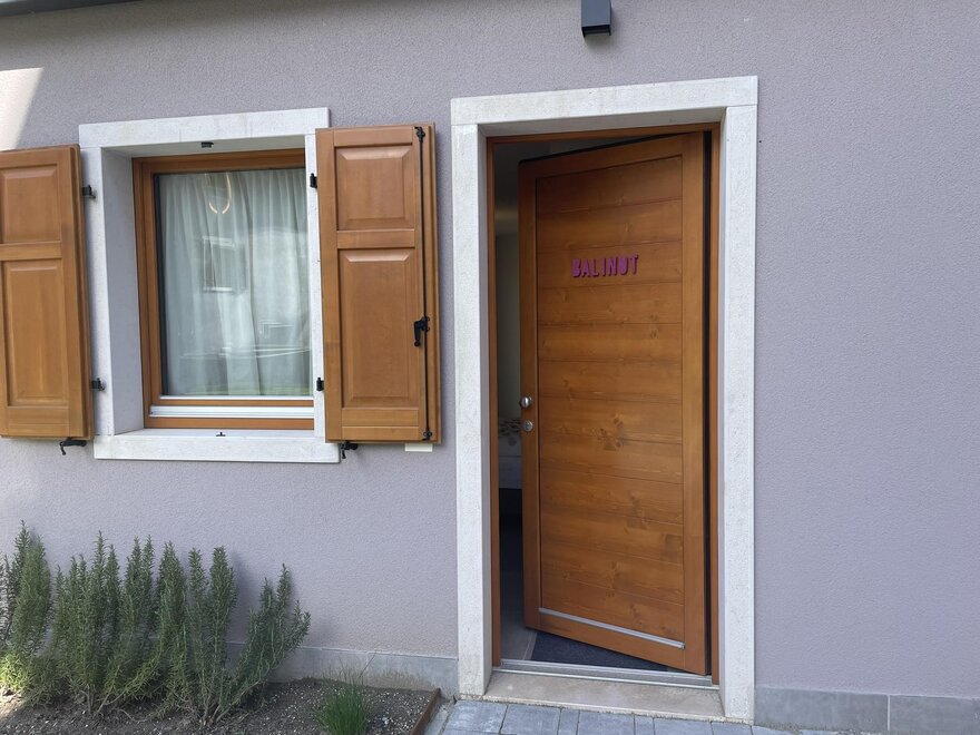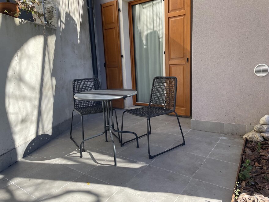 Umístěný v přízemí má nejen soukromý vchod, ale také přístup přímo do zahrady. Terasa ve stínu kaki vás zve k odpočinku. Kdo by nechtěl zakončit den tady s pěkným skleničkou vína?
