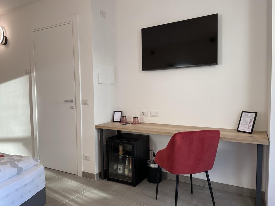 WiFi, pokoj/apartmán v tiché zóně, psací stůl, vlasový fén, terasa, moderní vybavení nábytkem, bez koberce, zásuvka u postele, minibar, nekuřácký pokoj, TV