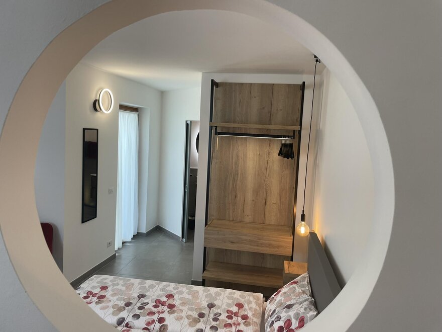 Manželský pokoj PONAL - TERRACE ROOM - je jediný pokoj, který kromě manželské postele "Queensize" je také jediným pokojem, do kterého podle jeho půdorysu pohodlně vejde i přistýlka nebo postýlka pro dítě. Proto si zde můžete užívat dovolenou ve třech, aniž byste museli obětovat komfort. Na soukromém balkoně se budete plně uvolnit ve stínu kaki.