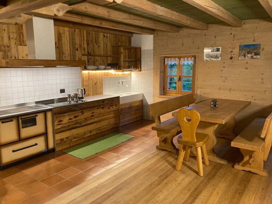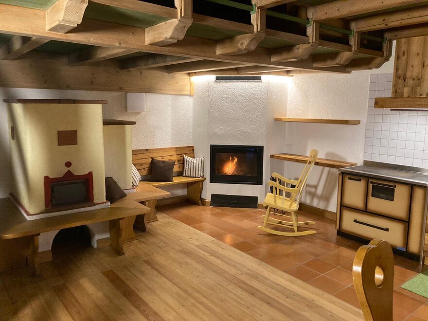 Chata, která voní rodinou, tradicemi, zemědělskými a alpskými příběhy. Kdekoliv se dýchá atmosféra venkova plná energie. Jakmile překročíte práh, uvítá vás pečlivě zařízený kuchyňský koutek a olejová kamna, dřevěný krb.
