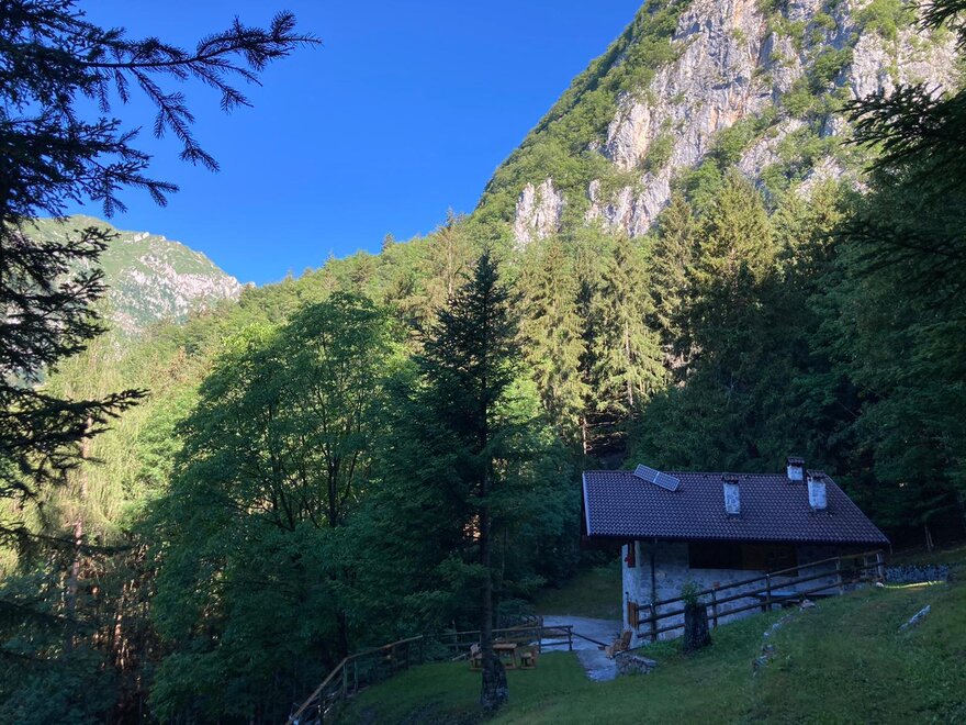Jsme v přírodním parku Adamello Brenta, na svazích Brentských Dolomit.