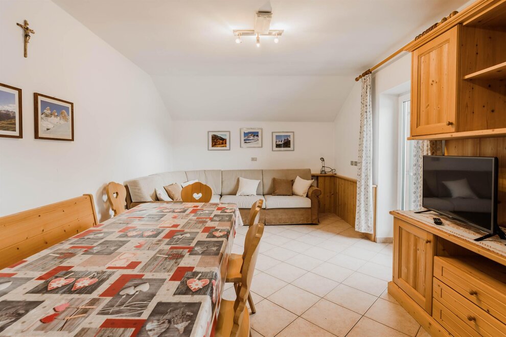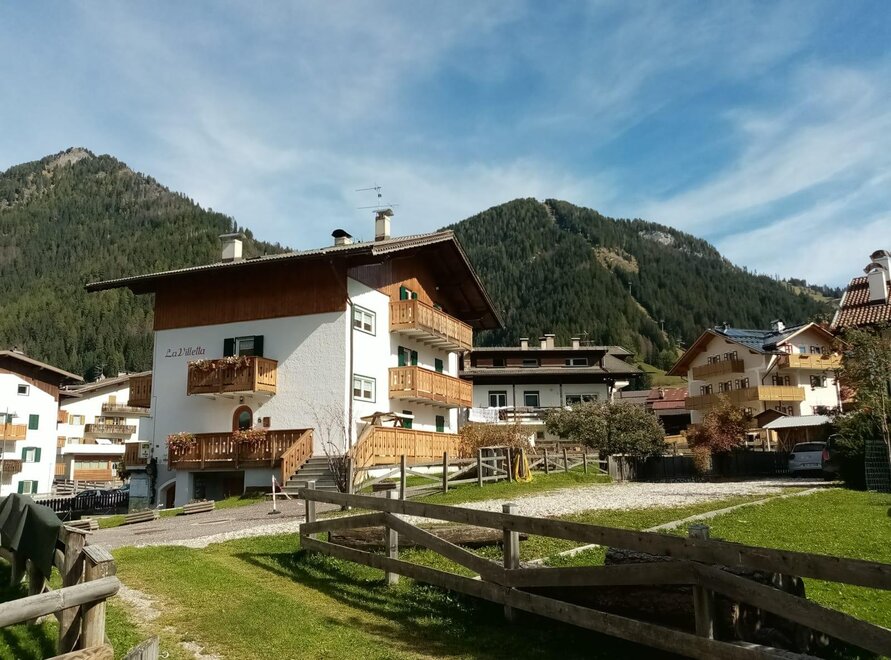 "Villetta" se nachází podél krásné ulice Via Meida, vklíněné od silnice, na slunném a panoramatickém místě, s zahradou. Z balkonu na jižní straně je vidět Cima Undici a Cima Dodici, les a sjezdovka Alloch, která se v noci osvětluje. Z balkonu na severní straně je nádherný výhled na skupinu Larsech a Sassolungo. Z domu, který se nachází v centru ulice, se během několika minut chůze dostanete k obchodům, jako jsou lékárna, pekárna, řeznictví, tabák a další. Zastávka skibusu je vzdálena 50 metrů. Také cyklostezka a běžecký okruh jsou snadno dostupné stejně jako procházky v lese. Východisko na Sellaronda je vzdáleno 5 minut chůze.