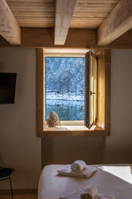 On the way back a beautiful dive into the lake and a fanciful aperitif to follow, made from local products and wines of Trentino at Bazzario Bistro’. There’s a lot of quite and relaxation in our suites overlooking the lake, where a relaxing shower with rainforest effect will wait for you.