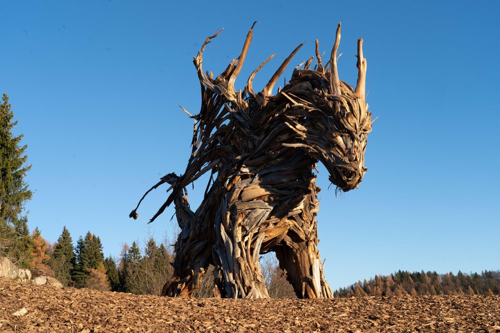 It’s not only a symbol of rebirth, since it takes shape from the scraps of the trees cut down by Vaia, but also an expression of the love for nature and the messenger of environmentally sustainable values.