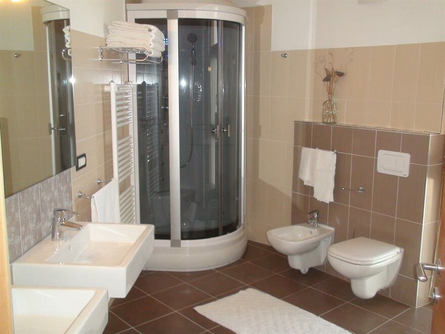 umyvadlo, sprcha, WC, bidet, WC, sprcha nebo vana, tekoucí studená/teplá voda