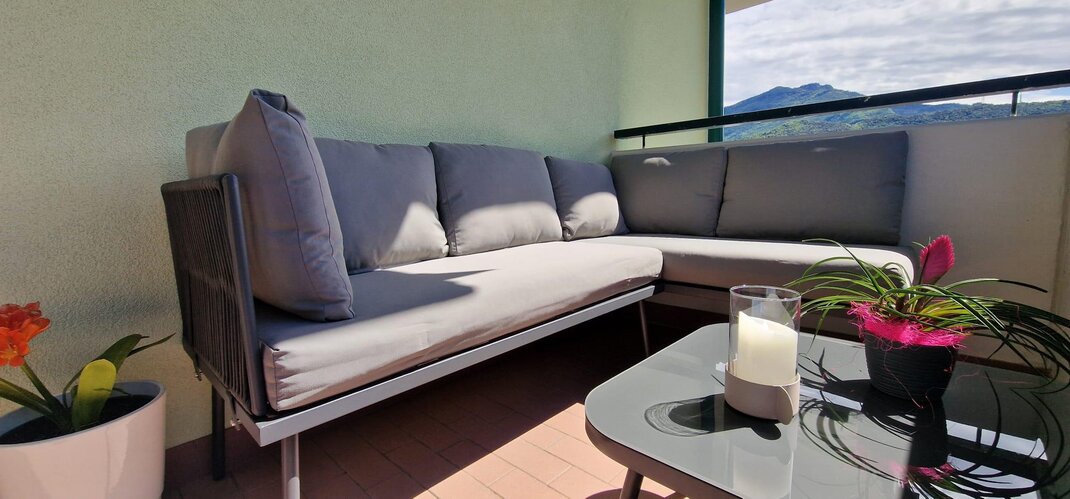 - 3 balkony s výhledem na hory, ideální pro venkovní snídaně.