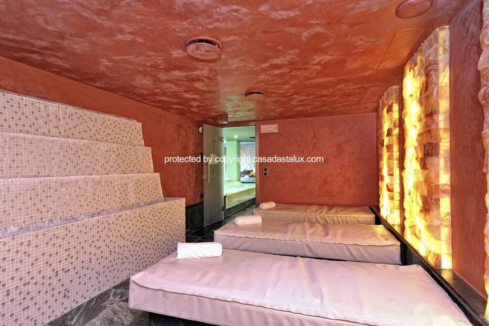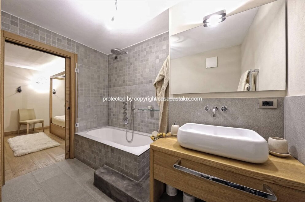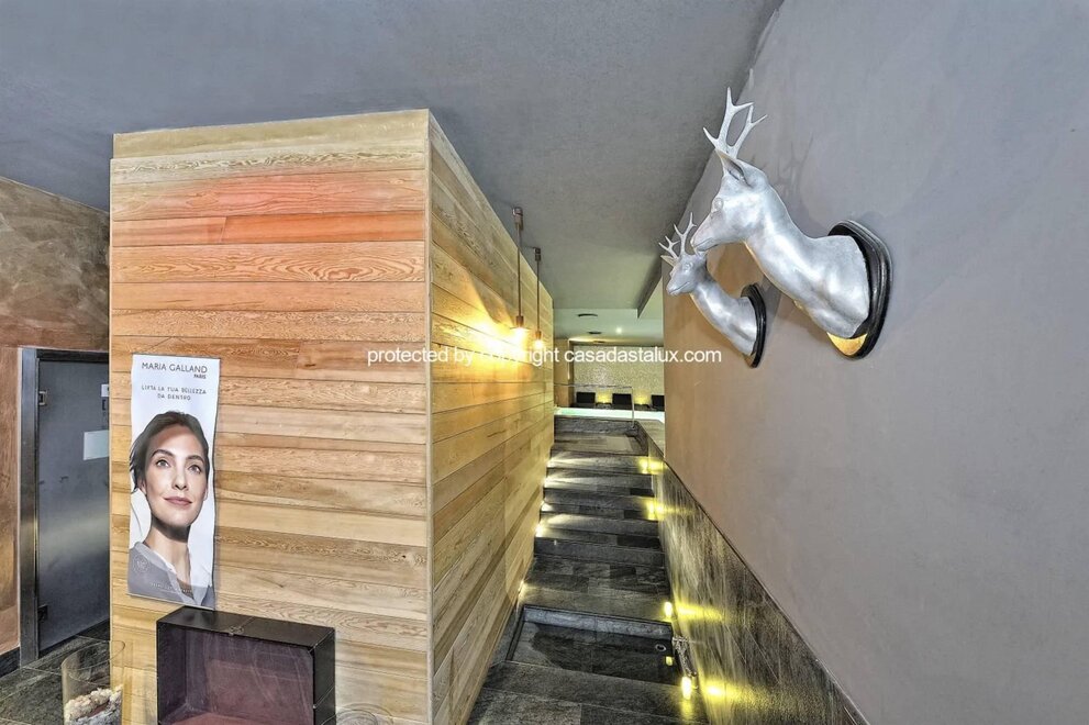 Luxusní apartmán v Campiglio s wellness centrem, se 3 ložnicemi a 3 koupelnami, v 1. patře moderní budovy s přímým přístupem k výtahu. Veškeré soukromí zajištěno přímým přístupem z garáže do apartmánu prostřednictvím výtahu s klíčem. Garáž pro 1 auto. Tento apartmán se 3 ložnicemi a 3 koupelnami se pyšní moderním a sofistikovaným designem, charakterizovaným prvotřídními povrchovými úpravami. Plně vybavená kuchyň se sklepem na víno a dvojitými indukčními varnými deskami; dvě chytré televizory s úhlopříčkou 65 palců, vysokorychlostní wi-fi. Úschovna lyží, prádelna vybavená pračkou a sušičkou, garáž. Zastávka skibusu přímo před budovou. Lyžařský vlek Spinale je pouhých 1,2 km daleko. Hosté mají k dispozici extra služby 5hvězdičkového wellness centra, s možností rezervace výhradního užívání wellness centra 4hvězdičkového hotelu od 11:00 do 13:00 nebo od 20:30 do 22:30, cena na vyžádání. Použití wellness centra v těchto hodinách je vyhrazeno hostům Casadastalux. Wellness centrum zahrnuje bazén, parní lázeň, saunu a himalájskou solnou místnost.