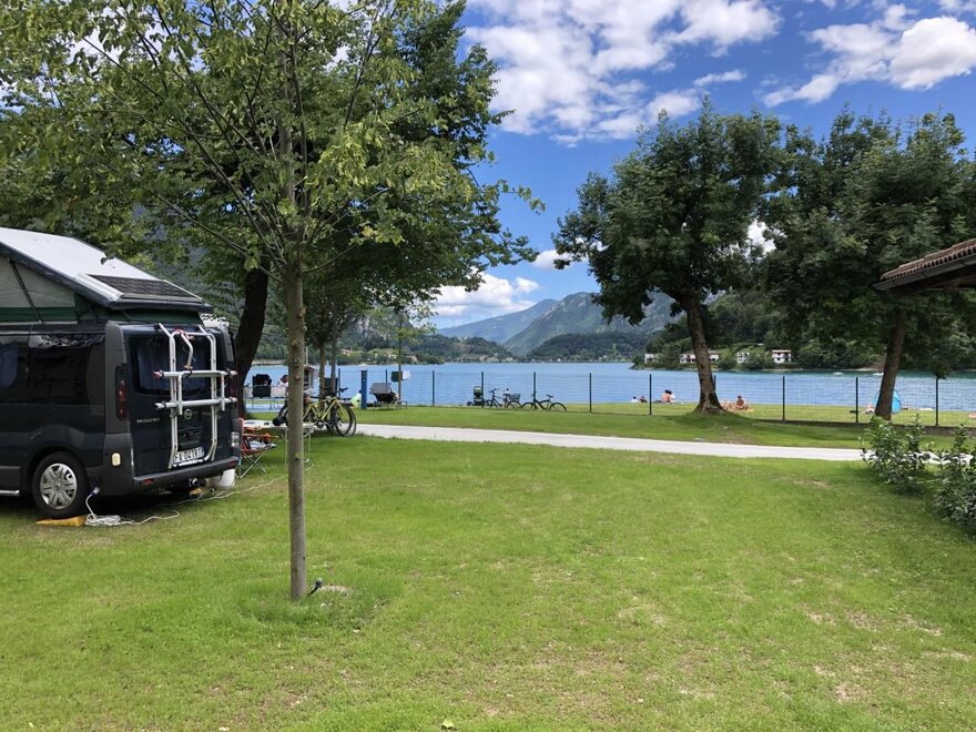 Naše kempování se nachází na břehu jezera Ledro.