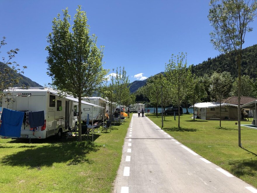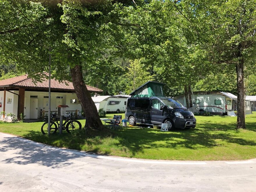 Pohodlné a plné stínu. Najdete prostorné stání se všechna elektrika, všechny služby s teplou vodou, pračku a sušičku, bar na snídaně a svačiny, to vše v mladém, rodinném a přátelském prostředí.