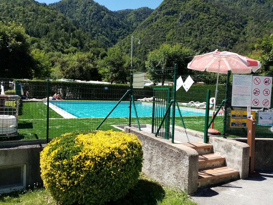 Nové dětské hřiště, bazén s modernizovanou sluneční terasou a lehátky.