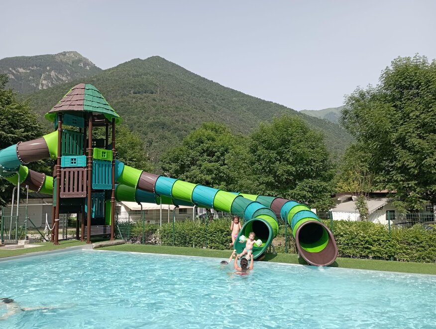 Pohodový, bohatý na stín, s prostornými místy s připojením na elektřinu, všechny služby s teplou vodou, pračka se sušičkou, žehlení, bar, snack, snídaně; to vše v rodinném, přátelském a profesionálním prostředí. Hry pro děti, dětský bazén se sluneční terasou.