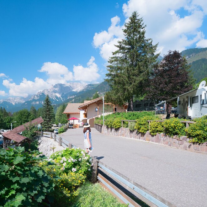 Pohrouženi do klidu našeho kempu v Campitello v údolí Val di Fassa, kousek od Canazei, si vychutnáte potěšení žít společně se svou rodinou hory novým a odlišným způsobem. Obklopen dvěma potoky, Camping Miravalle v Campitellu je působivým pozadím vašich prázdnin v údolí Val di Fassa, které můžete strávit objevováním magie okolní přírody a prožíváním jejích zvláštností jak v létě, tak v zimě. Kemp se nachází 50 metrů od centra Campitello di Fassa a 10 minut pěšky od Canazei. Poloha je ideální pro pěší dosažení lanovek spojených s oblastmi Giro dei 4 passi a Dolomiti Superski a hlavních trekkingových tras na Dolomitech. Camping Miravalle je obklopen krásným rámem Sasso Lungo, Pordoi a Marmolady.