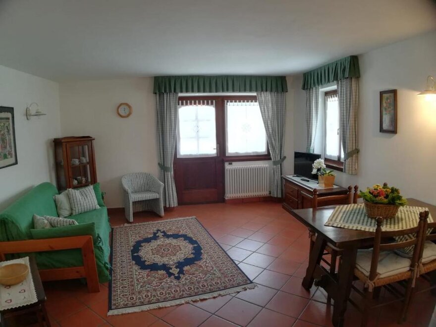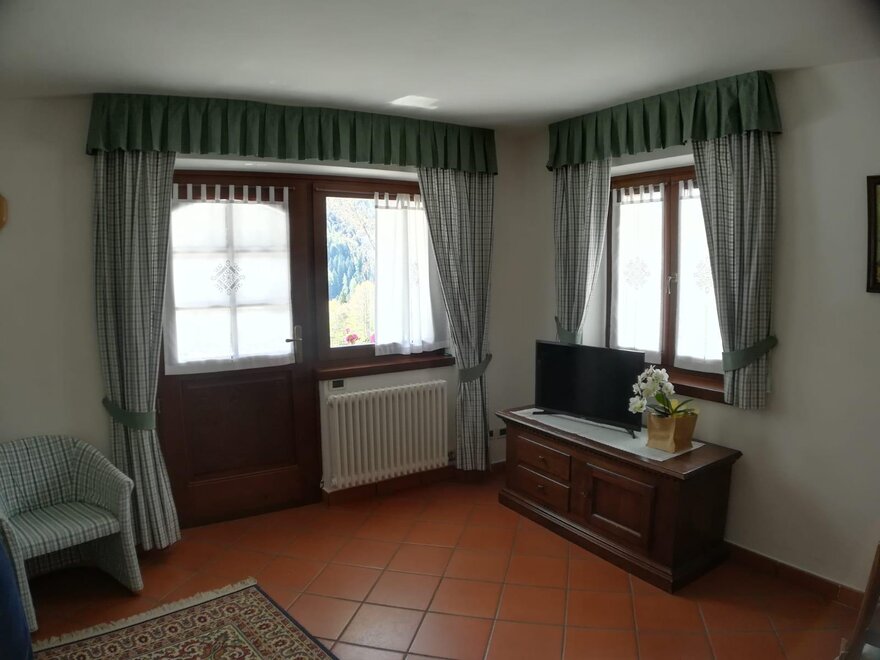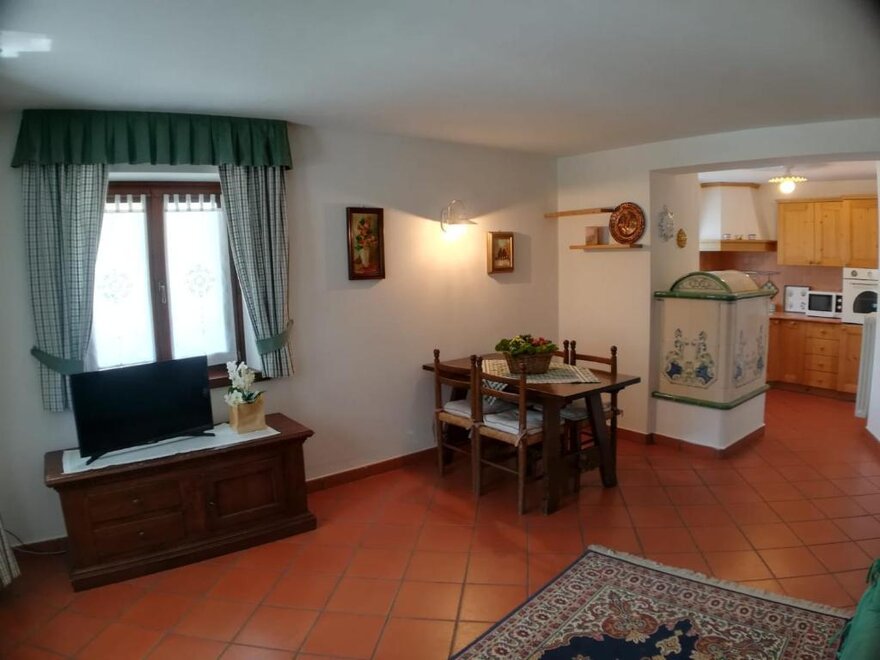 Byt v přízemí složený z kuchyně a obývacího pokoje s pohovkou, 1 ložnice s manželskou postelí, 1 koupelny se sprchou; a parkování v garáži, zdarma. V klidné oblasti, jen 4 km od Madonna di Campiglio a 4 km od Pinzolo. Odtud začátek mnoha procházek bez nutnosti použití automobilu. Domácí zvířata nejsou povolena. Hovořené jazyky: angličtina a němčina.