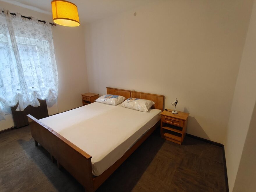 Ubytování zahrnuje tři ložnice: dvě manželské a jednu jednolůžkovou, celkem pro pět osob. K dispozici je plně vybavená koupelna s vanou a druhá koupelna se záchodem a umyvadlem. Najdete zde obývací pokoj s TV a pohovkou a pro dokončení nemovitosti je k dispozici společný sklad pro vybavení.