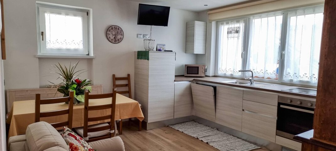Byt o rozloze přibližně 50 m² v přízemí v srdci části Gionghi v Lavarone. Obývací prostor s obývacím pokojem a kuchyní vybavenou myčkou, troubou, varnou deskou a lednicí. Dva pokoje, jeden manželský a jeden s rozkládací pohovkou pro dvě osoby. Koupelna s oknem a sprchou a pračkou.
