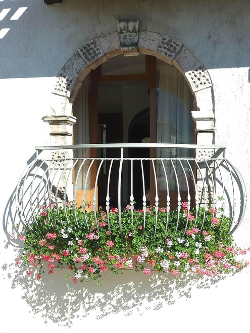 Apartmán se nachází v prvním patře zrekonstruovaného rustikálního domu, má samostatný vchod, vyhrazený dlážděný dvorek a parkovací místo. Na západní straně malý balkon pod charakteristickým kamenným obloukem dodává bydlení šarm. Malá zahrádka s pergolou je k dispozici hostům poblíž domu.
